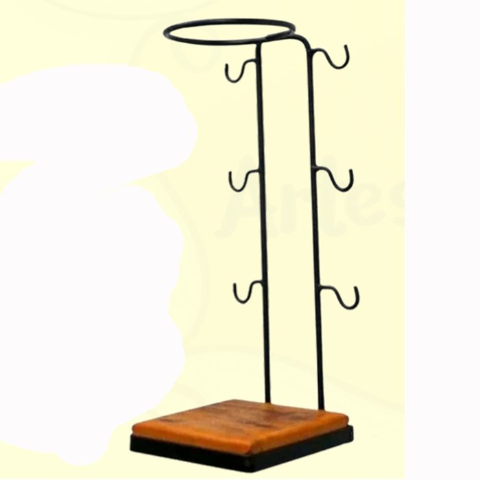 Mancebo fabricado artesanalmente em ferro com acabamento em pintura esmaltado, e suporte em madeira de demolição, dando ao produto um aspecto natural de envelhecimento.