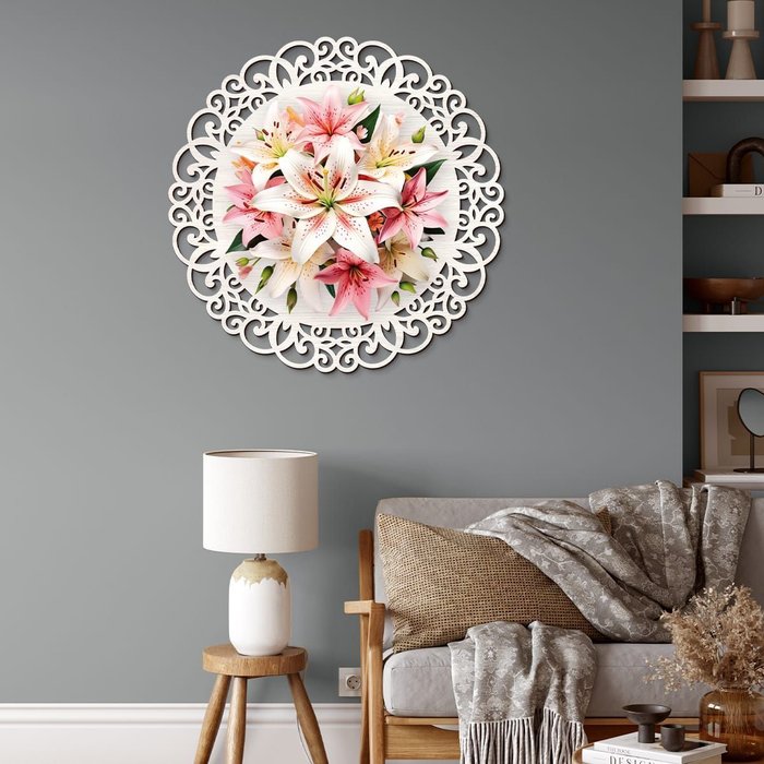 Mandala em Madeira, Impressão Uv - Lírio 2