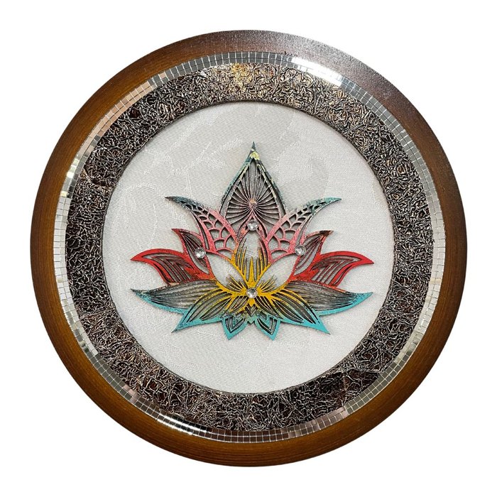 Mandala Flor de Lotus Color 24x24cm Oficina da Arte Brasil madeira