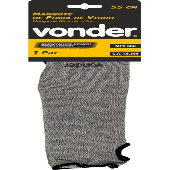 Marca: Vonder Conteúdo da embalagem: 1 Par Destaques e diferenciais:Possui resistência ao corte, oferecendo proteção e conforto. Dicas de uso:Indicado para proteção do braço e antebraço do usuário contra agentes abrasivos, escoriantes, cortantes e perfurantes. EPI não aprovado para uso em operações de soldagem e processos similares. Detalhes Técnicos:Certificado de aprovação (CA): 45388 Comprimento: 55,0 cm Material: Fibra de vidro Tamanho: 55,0 cm