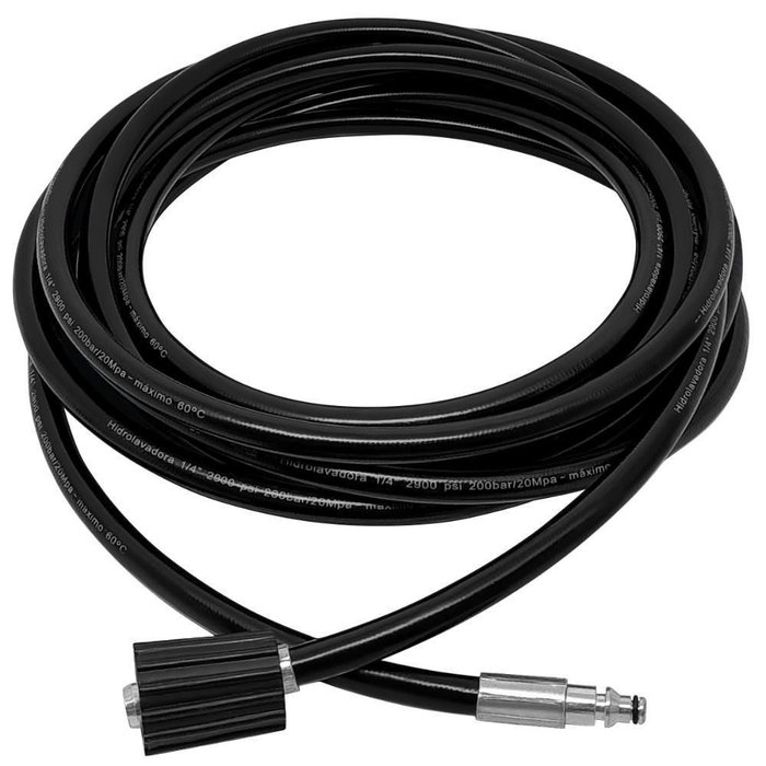 Mangueira de Alta Pressão para Lavadoras, com reforço interno em nylon, altamente resistente e flexível com conectores resistentes a oxidação.