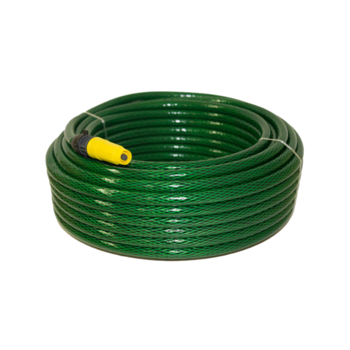 Mangueira verde , PVC, espessura da parede de 1,0mm. Completa: com conexão e esguicho plástico.Aplicação: Condução de água fria para lavagem, irrigação e serviços gerais. - - Marca: PLASMANGA Mangueira acompanha engates rosqueados e esguicho já montados, proporcionando mais facilidade no uso. Produzida com materiais mais resistentes e de qualidade, também possui 2 camadas diferentes.Essa Mangueira pode chegar à pressão de 15 bar, proporcionando mais qualidade para você.-Comprimento: 10/15/20/ Metros-Acompanha esguicho e adaptador de torneira. Para aumentar a durabilidade da mangueira, não deixá-la exposta ao sol após o uso;. A temperatura máxima de trabalho da água deve ser 50 °C.DICAS DE USO :A principal vantagem da mangueira de jardim é transportar água para diferentes locais distantes. Sem este instrumento a gente teria que usar baldes para transporte de água, algo trabalhoso, desconfortável e inseguro.É possível irrigar o jardim pela superfície ou até mesmo pelo subsolo, Banhos em cães, Lavagem em carros, adaptado para qualquer torneira padrão ... Para ter uma boa durabilidade, é preciso ter alguns cuidados e sempre guardar a mangueira de jardim higienizada. Sendo ideal não deixa a mangueira exposta as mais diferentes condições climáticas, como chuva e sol.