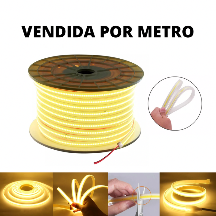 Mangueira Fita Led Cob Branco Quente Metro Achatada 127v Ip66 Externa