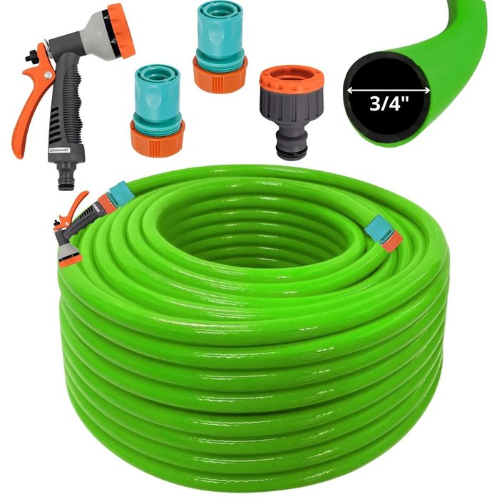 Mangueira Jardim 30m Metros +esguicho Hidropistola + Engate Rápido 3/4" e 5/8" + Bico P/ Engate Rápi