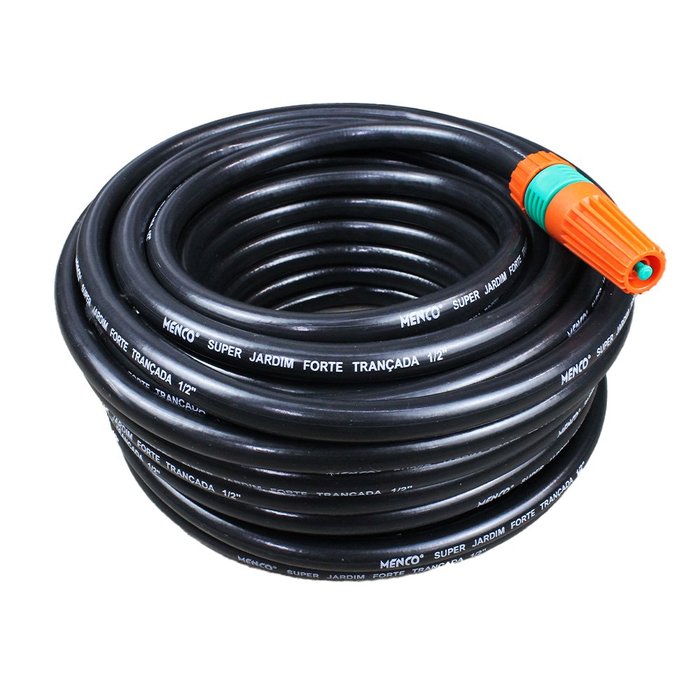 - Conteúdo da Embalagem: 50 metros de Mangueira Super Jardim Forte 1/2" pol Menco + 01 Esguicho com jato regulável 1/2 pol Tramontina.