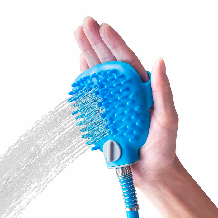 Mangueira Luva Banho Pet Caes Gatos Petshop Massageador Azul