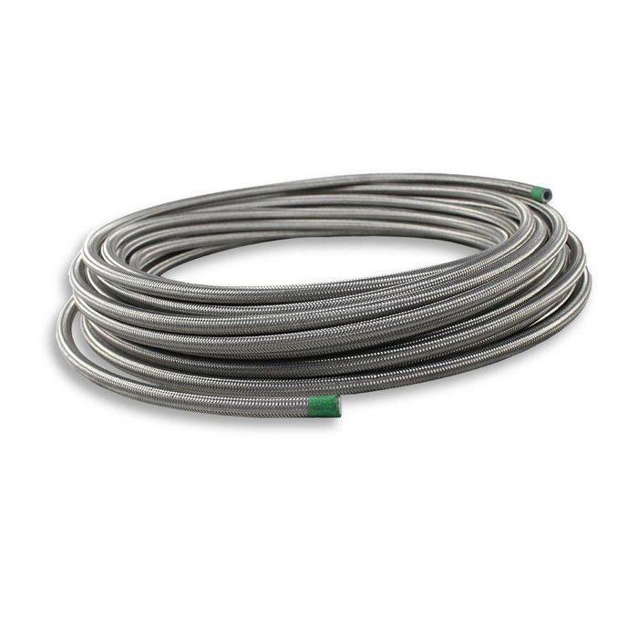 A Mangueira Menco Hidráulica R14 Teflon Malha Inox 3/8 10Mt é feita de teflon com reforço de aço inoxidável.