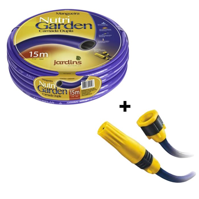 * A embalagem acompanha: 01 Mangueira Nutrigarden (15M) + 01 Engate de Torneira + 01 Esguicho Regulável.