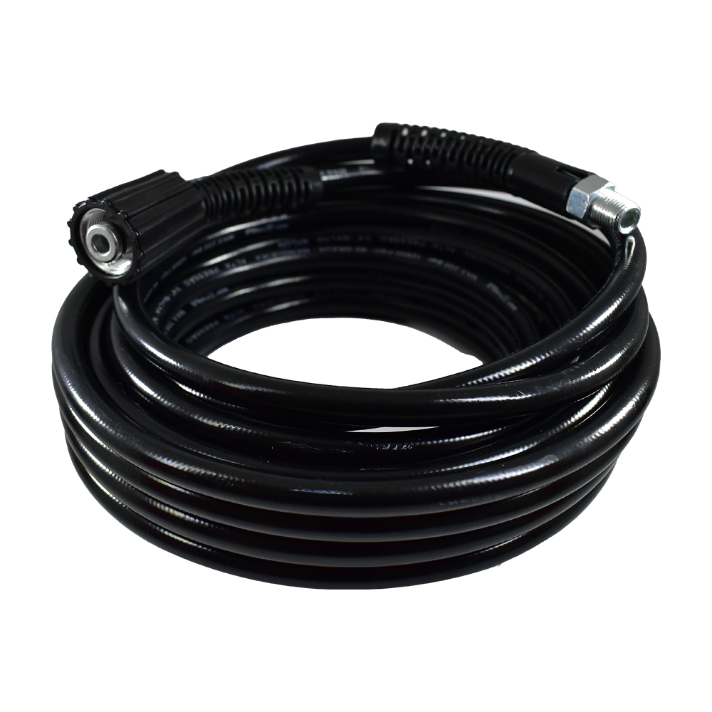 Mangueira para lavadoras de alta pressão, resistente e flexível, ideal para uso em limpezas pesadas. Oferece durabilidade, alta resistência a abrasões e pressão, garantindo um fluxo de água constante e seguro. Compatível com diversos modelos de lavadoras.