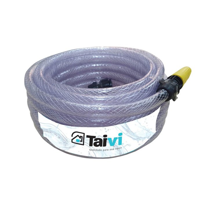 Pronta para uso, acompanha a conexão da torneira e esguicho plástico reto indicada para condução de água fria na limpeza e irrigação em jardim.