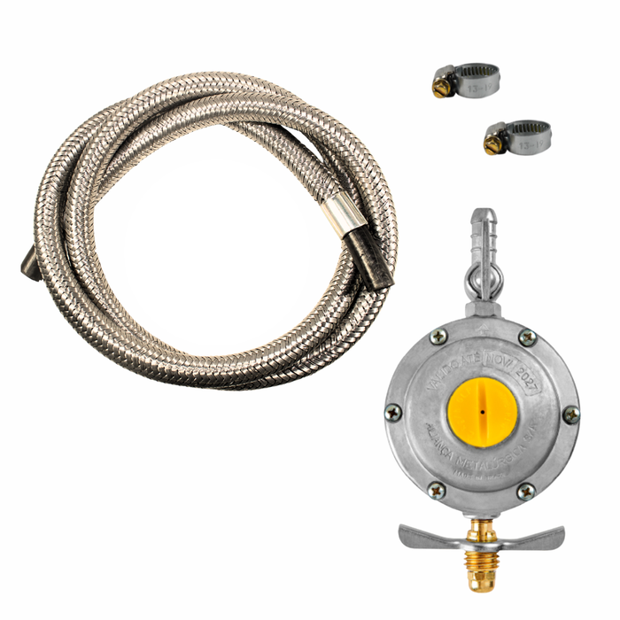 A Mangueira Flexível Revestida com Malha de Aço para Gás, acompanhada do Regulador de Pressão Aliança 2kg/h, é um kit indispensável para quem busca segurança, durabilidade e eficiência na condução de gases, como GLP (Gás Liquefeito de Petróleo) e GN (Gás Natural).