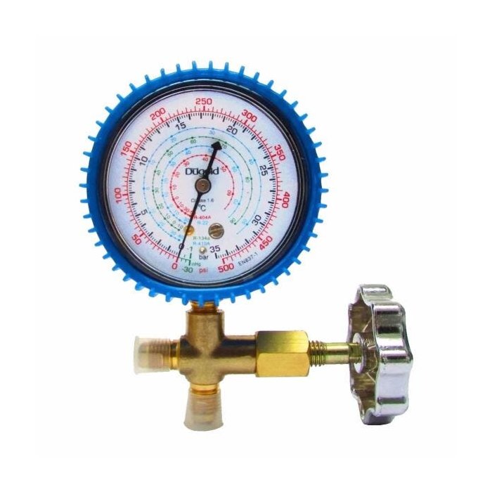O manifold de baixa, também conhecido como manômetro ou manifold simples, é uma ferramenta essencial ao técnico de refrigeração, mede o fluxo de gases e sua pressão no interior de um sistema. Manifold de baixa desenvolvido especialmente para mensurar gases refrigerantes, especificamente os gases R12, R22 E R502.