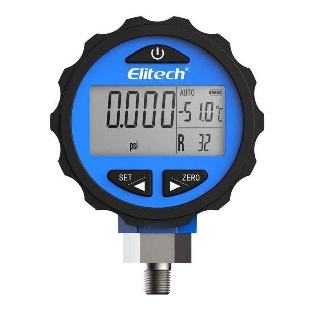 Manômetro Digital para Baixa Pressão 0 a 500psi a Pilha Alcalina AAA (1,5v) <p>Manômetro digital para baixa pressão 0 a 500PSI. Permite a seleção de 87 tipos diferentes de gases refrigerantes e unidade de medida de leitura de pressão, indica a temperatura do gás de acordo a tabela TxP - acompanha as pilhas</p> <p><strong>Especificações Técnicas:</strong></p><p>- Marca: Elitech</p><p> - Referência: PG-30PRO BLUE</p><p> - Rosca: 1/8 NPT</p><p> - Pilha Alcalina AAA (1,5V)</p><p> - Gases compatíveis: R114, R12, R123, R1234yf, R1234ze, R124, R125, R13, R134a, R14, R141B, R142B, R143A, R152A, R161, 170, R21, R218, R22, R23, R290, R32, R290, R32, R401A, R401B, R401C, R402A, R409B, R41, R410A, R410B, R412A, R413A, R414A, R414B, R415B, R416A, R417A, R419A, R420A, R421A, R421B, R422A, R422B, R422C, R422D, R423A, R427A, R437A, R441A, R442A, R443A, R444A, R449A, R449B, R450A, R452A, R455A, R50, R500, R502, R503, R504, R507, 508A, R508B, R509A, R513A, R600, R600a, R601, R601a, R740, R744</p><p> - Dimensões da embalagem (LxAxC): 12,00 x 14,00 x 17,00</p><p> - Peso da embalagem: 0,255 kg</p><p> - Dimensões do produto: 08x11x04cm</p><p> - Garantia: 3 meses</p>
