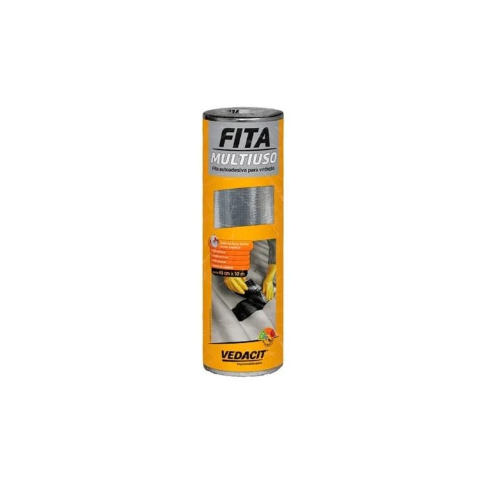Fita Multiuso para reparos é uma fita asfáltica impermeável, produzida à base de asfaltos modificados com polímeros e elastômeros, que apresenta excelente aderência a vários substratos. A cobertura superficial de alumínio atua como barreira refletora dos raios solares e apresenta grande durabilidade. É de fácil aplicação, sendo um modo prático, rápido e eficaz de vedar imediatamente goteiras e infiltrações.