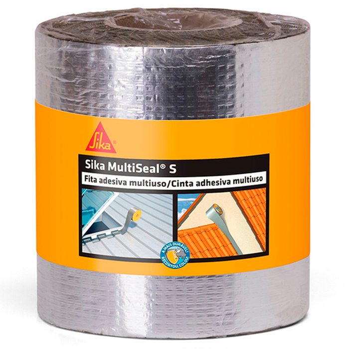 Sika MultiSeal S é uma fita impermeável autoadesiva composta de uma camada de adesivo asfáltico, coberto com uma lâmina de alumínio e protegido por um filme plástico.