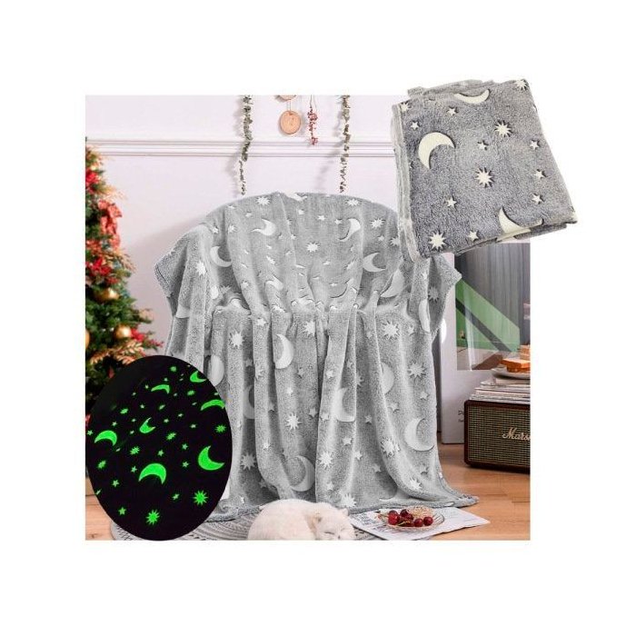 Manta Cobertor Infantil Brilha no Escuro Mantinha Fluorescente Microfibra Extra Macio Lua Estrelas