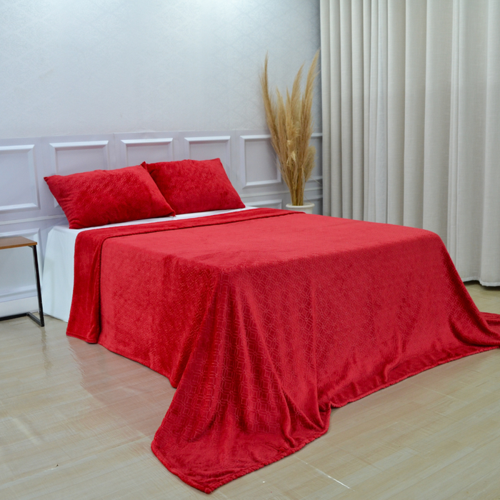 Manta de Microfibra Casal Antialérgica Soft Alto-relevo Geométrico 2,20m X 2,50m Vermelho