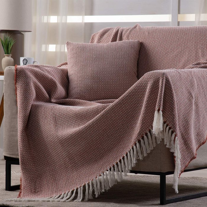 Manta Decorativa para Sofá Boho Hebrom Terra Cota Fastlar Manta 100% Algodão 140x150cm Terra Cota