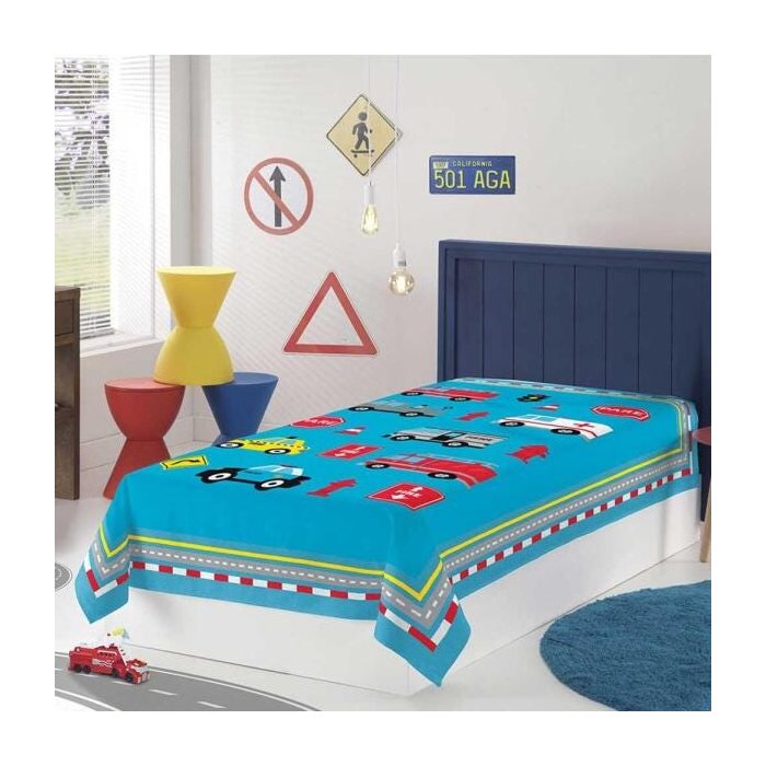 Descrição: Manta fleece da coleção Truck traz extrema fofura, não só em seu tecido como também em sua estampa! Ela ilustra os veículos mais amados pelos pequenos, como carrinhos de polícia, bombeiros, ambulância e táxi. Em tons de azul, vermelho, e amarelo, estampa também elementos do trânsito, faixas e cones. Além de decorar, ela promete o máximo de conforto nas horas de descanso e noites de sono quentinhas e tranquilas.