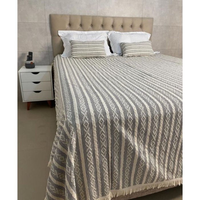 Manta King Artesanal Trabalhada 2,20m X 2,60 - Emanoel Textil Manta King Trabalhada
