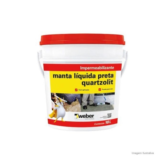 Manta líquida preta quartzolit é uma membrana asfáltica para a impermeabilização de superfícies, como concreto, argamassa, alvenaria, superfícies metálicas e madeira.