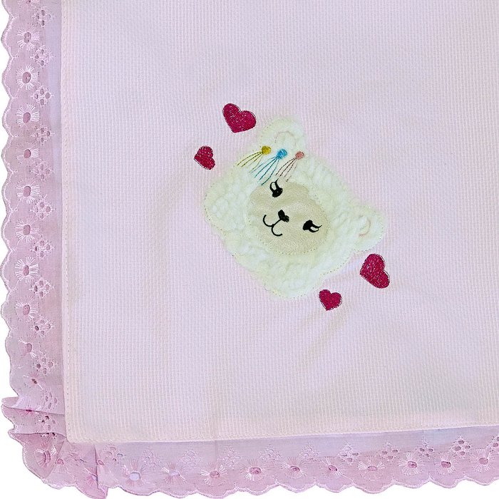 Manta em pique, forrada. Possue bordado delicado, tem um toque macio, ideal para ser usada no berço e no passeio do seu bebê.