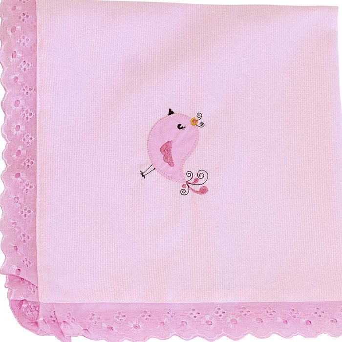 Manta Para Bebe Dupla Pique Passarinho 100% Algodão- 1 Peça Balu Baby ROSA