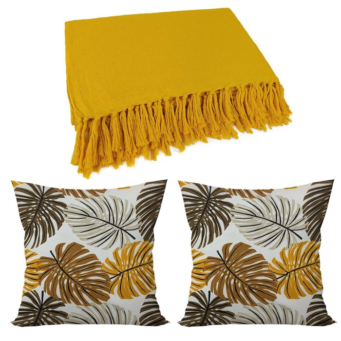 Manta para Sofá Amarela + 2 Capas de Almofada Laranja Amarela