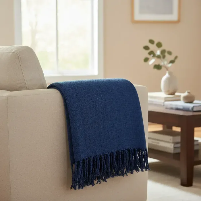 Manta para Sofá em Algodão Azul Mesclado Gigante 2,40x1,80