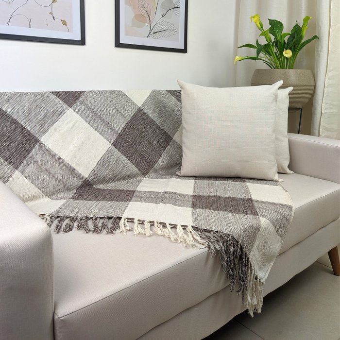 Decore e projeta seu sofá com estas mantas maravilhosas. Nossas mantas medem 240x180cm e são feitas com 100% de algodão. Suas franjas são amarradas à mão para não desfiarem, garantindo sua durabilidade e design exclusivo. Estas mantas são perfeitas para sofás, poltronas e podem ser usadas como lençóis de cama!