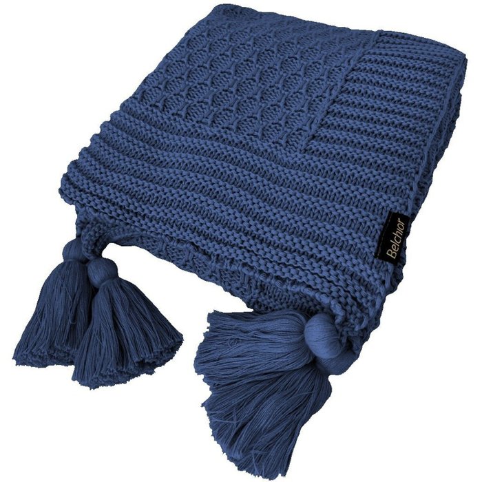 Manta Peseira de Tricot 90x180 Cm com Tassel - Colméia Azul Jeans