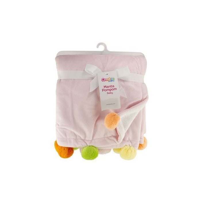 Manta Pompom Baby Comtac Kids Rosa e Branco