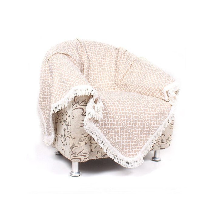 Manta Sofá Bege Clássica 2,30x1,50 com Franja Tecido Jacquard