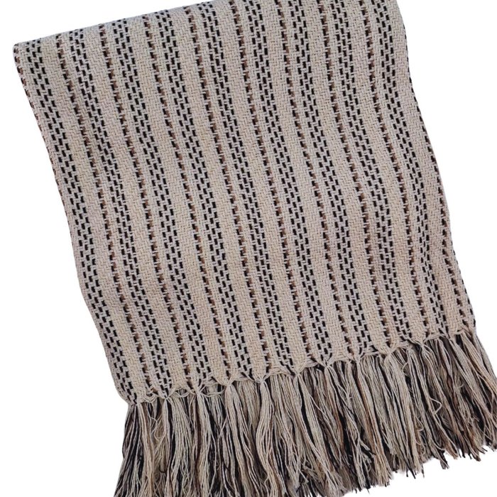A Manta Decorativa Algodão Escamas é confeccionada em Algodão. As tramas possuem detalhes bem trabalhados e possui acabamento em franjas que trazem estilo e aconchego, ao ambiente. Dica: utilize-a também como peseira e complete a sua decoração com almofadas!