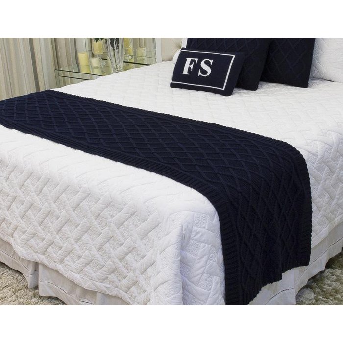 Manta Sofa Sala Cama Casal Tricot Paris Marinho Marinho