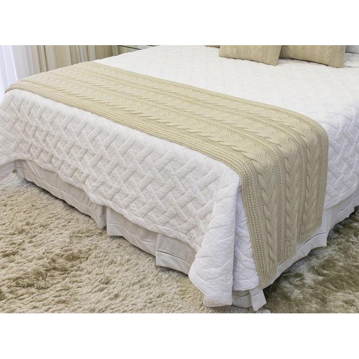 Manta Sofa Sala Cama King Tricot Viena Bege