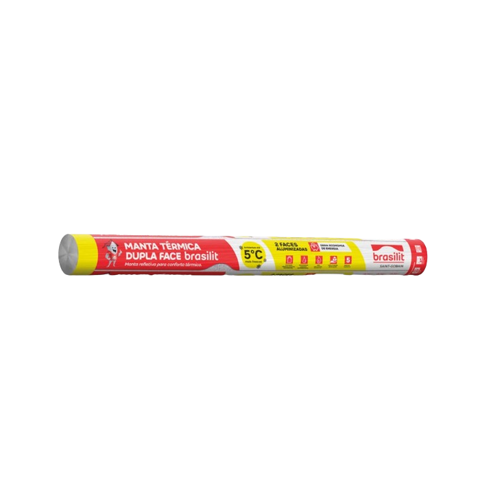 A Manta Térmica Dupla Face Brasilit é uma subcobertura impermeável super resistente, composta por duas faces aluminizadas. Através da reflexão dos raios solares, esse material reduz a passagem de calor e deixa a temperatura do ambiente interno sempre agradável. A Manta Térmica Dupla Face Brasilit consegue deixar os ambientes até 5ºC mais frescos. Além disso, por serem uma uma camada extra que vai embaixo das telhas, elas ainda protegem sua construção contra possíveis infiltrações do telhado! E o melhor: a Manta Térmica Dupla Face Brasilit pode ser utilizada sob qualquer tipo de telha (telhas de fibrocimento, telhas de barro, concreto, entre outras).