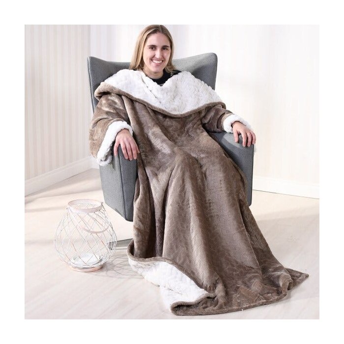 Manta Tv Com Mangas 1,35M X 1,70M Dupla Face Toque Flannel + Sherpa Lã De Carneiro Marrom Shitake -