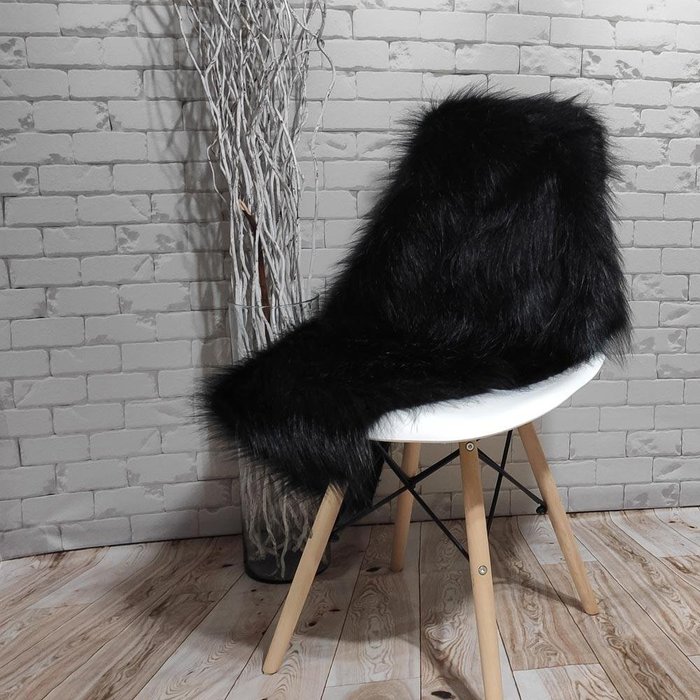 Manta Xale de Pelúcia Pelo Alto Preto Para Sofá/Cadeira Decoração Youtubers 1,00x80cm Preto