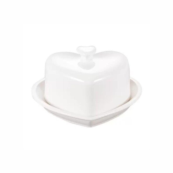 Manteigueira em Porcelana Heart Branca 14x9cm Haüskraft