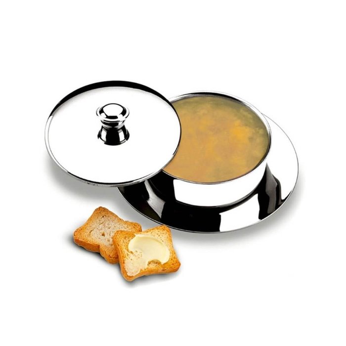 Conteúdo: 1 manteigueira inox com tampa e com pires fixo;