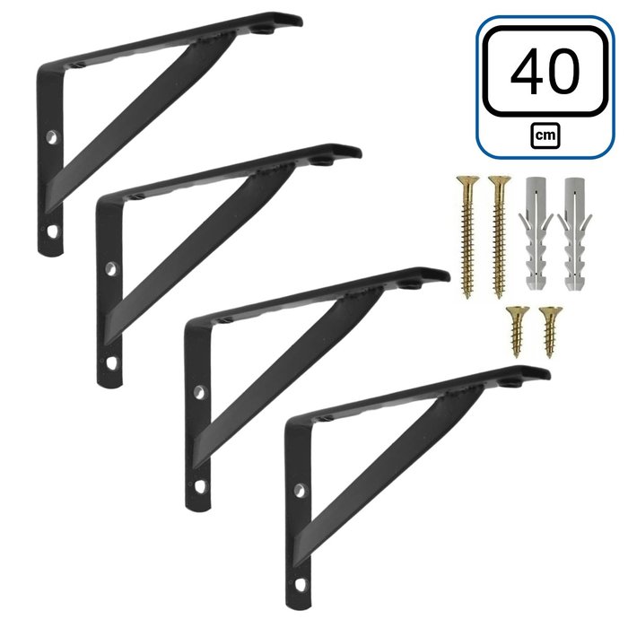 Mão Francesa 40 cm 4 pcs Suporte Cantoneira Prateleira Preta