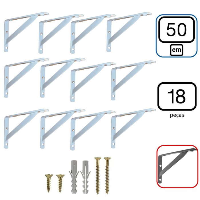 Mão Francesa 50cm 18 peças Suporte Cantoneira de Prateleira