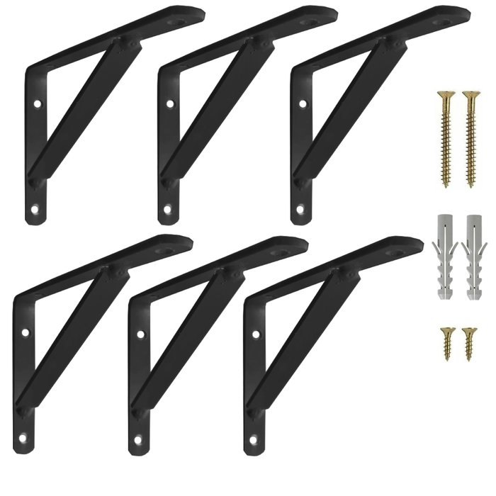 Mão Francesa Reforçada 15cm 6un Preta Cantoneira Prateleira