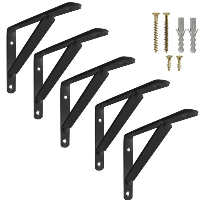 Mão Francesa Reforçada 35cm 5un Preta Cantoneira Prateleira