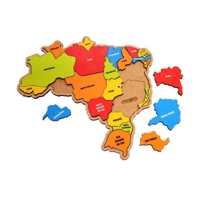 Com o Quebra Cabeça Mapa do Brasil as crianças aprendem as regiões e os estados do Brasil brincando! Na base de madeira, estão impressas as regiões do Brasil e por cima, os 26 estados brasileiros deverão ser colocados no seu lugar! Conhecer o Brasil nunca foi tão divertido!