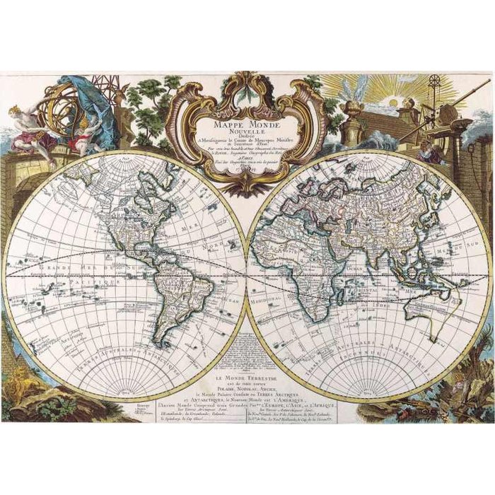 Mapa Mundi Antigo 1744 - Tela 30x42 Para Quadro
