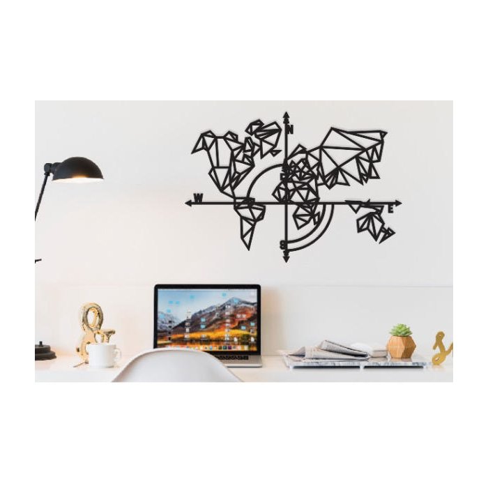 Mapa Mundi Geométrico Poligonal 60x41cm Madeira Mdf Parede Preto