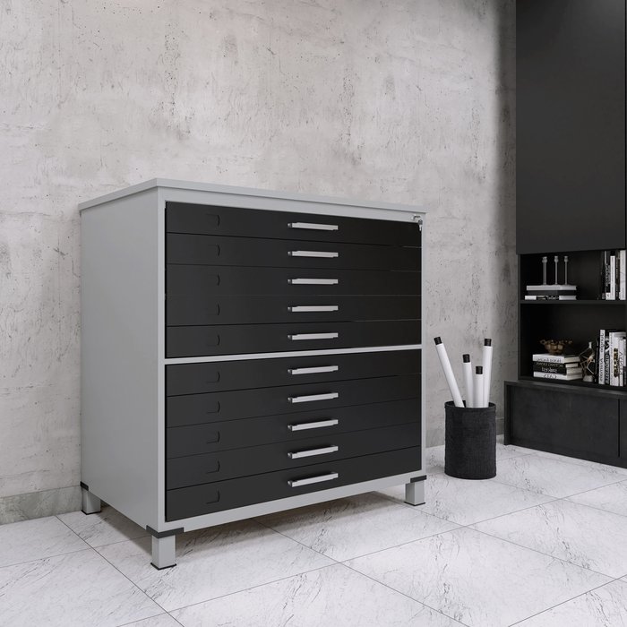 Mapoteca de Aço Fixa com 10 Gavetas Cinza/Preto