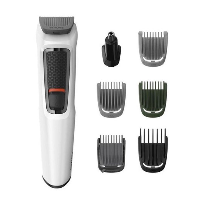 O aparador multifuncional, 7 em 1, para barba e cabelo. Apare os pelos (acima do pescoço) e cabelo de forma eficiente e rápida Este modelo foi projetado para ser potente sem comprometer o conforto da pele. Seguro e confiável, apara contornos de barba, bigode, pelos faciais, do nariz e também o cabelo.